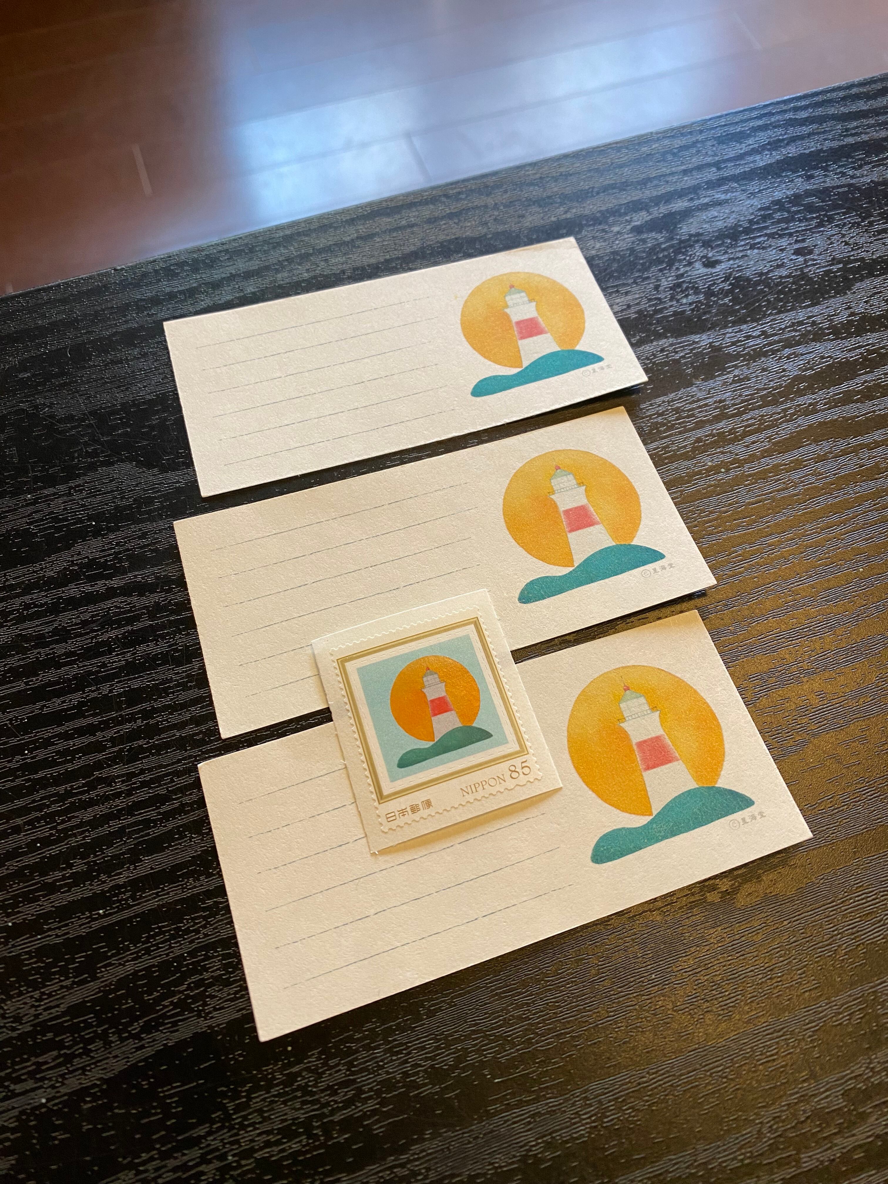 星海堂で人気のオリジナル切手2種類と、おなじ絵柄のミニ一筆箋をおつけしたセットです
